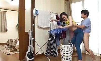 Gamine dame Mai Shimizu wakes her BF up to be smashed at night