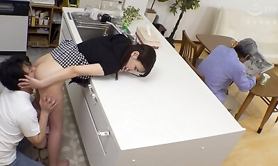 Mature Japanese housewife with big nipples cuckolds her spouse