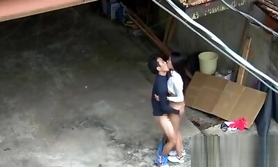 Horny, sensual and filthy Asian couple making out and outdoor tearing up