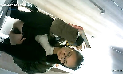 Japanese babes peeing golden piss in urinal Pov voyeur