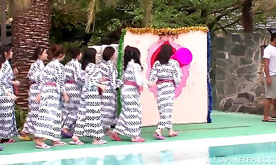A gang of Japanese individuals engage in an outdoor sexual activity featuring Sara Saijo, a jaw-dropping and alluring Asian lady.