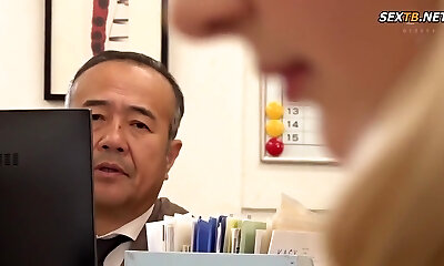Dirty blonde fuckslut finds a hot connection with her Japanese spouse's boss.
